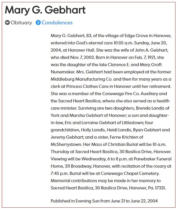 Mary Gertude Nunemaker Gebhart