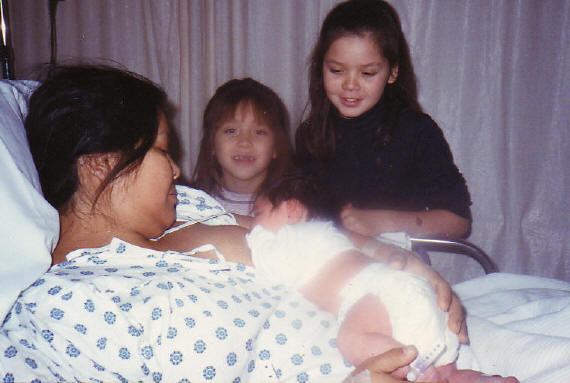Chrystal and Misty with their mom Joni and new half brother Charlie Simmons.