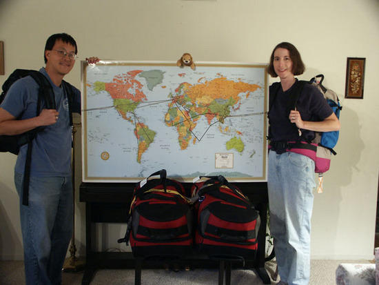 Their words "Getting ready! We're allowed 1 duffel bag and 1 backpack, so we have to pack light!"