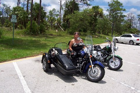 Nilda Schreiber with a Suzuki Boulevard with sidecar. . |