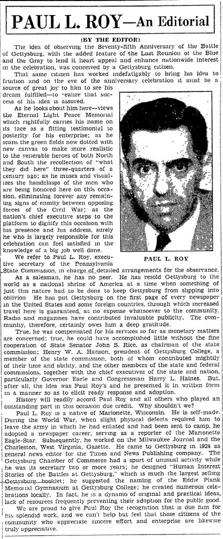 From the Gettysburg Times 6/29/1938