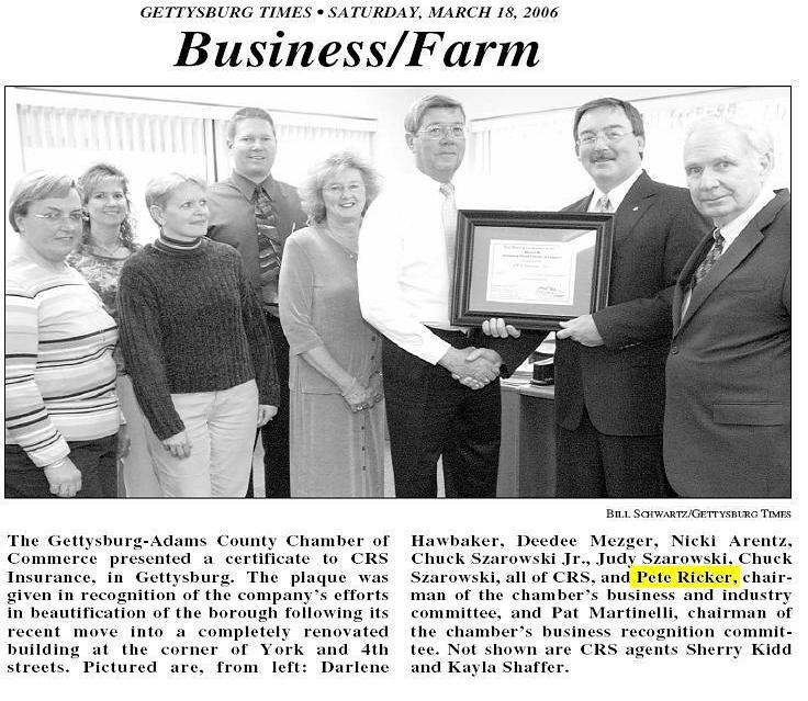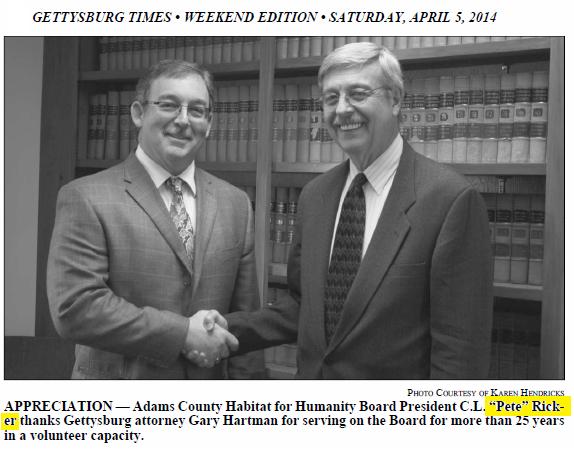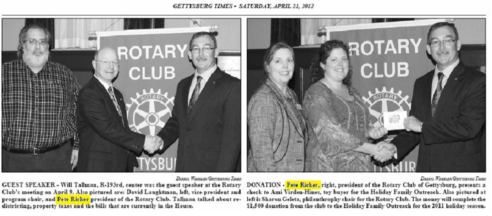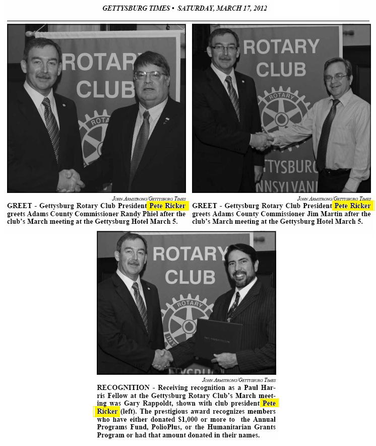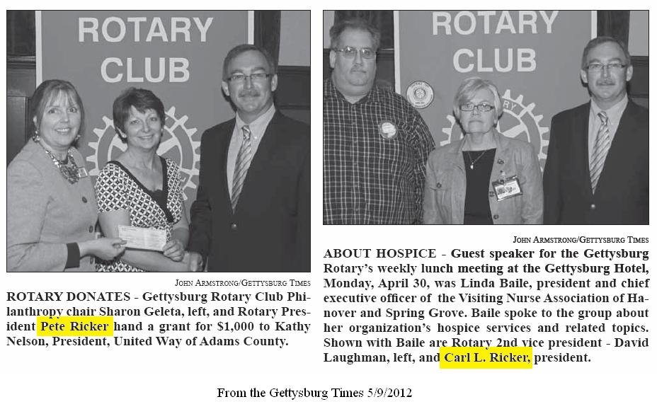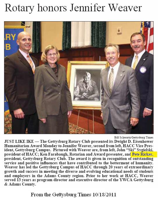 AWARD RECIPIENT — Carl L. “Pete” Ricker was named recipient of the 2022 Dwight D. Eisenhower Humanitarian Award. It is presented by the Rotary Club of Gettysburg and is given to residents of Adams County who demonstrate a life-long commitment to the local community and to the world community. Ricker provided excellent leadership in his volunteer role as president of the Adams County Habitat for Humanity Board. After seven years as president of the Adams County Habitat for Humanity, Ricker decided it was time to pass the reins on to someone else. Ricker also dedicated his time and talent to Junior Achievement of South-Central PA, AYSO Soccer, Adams County Tech Prep (now Adams County Technical Institute), as a representative on behalf of the banking industry to various elected officials, chair of the Chamber Business and Industry Committee, as well as many other organizations. First presented to Dwight D. Eisenhower by the Palm Desert Chamber of Commerce, the award was transferred in 2003 to the Rotary Club of Gettysburg because of the club’s links to Eisenhower. Ricker received the award at the Rotary’s luncheon meeting on Oct. 17, at the Gettysburg Hotel. (Darryl Wheeler/Gettysburg Times)