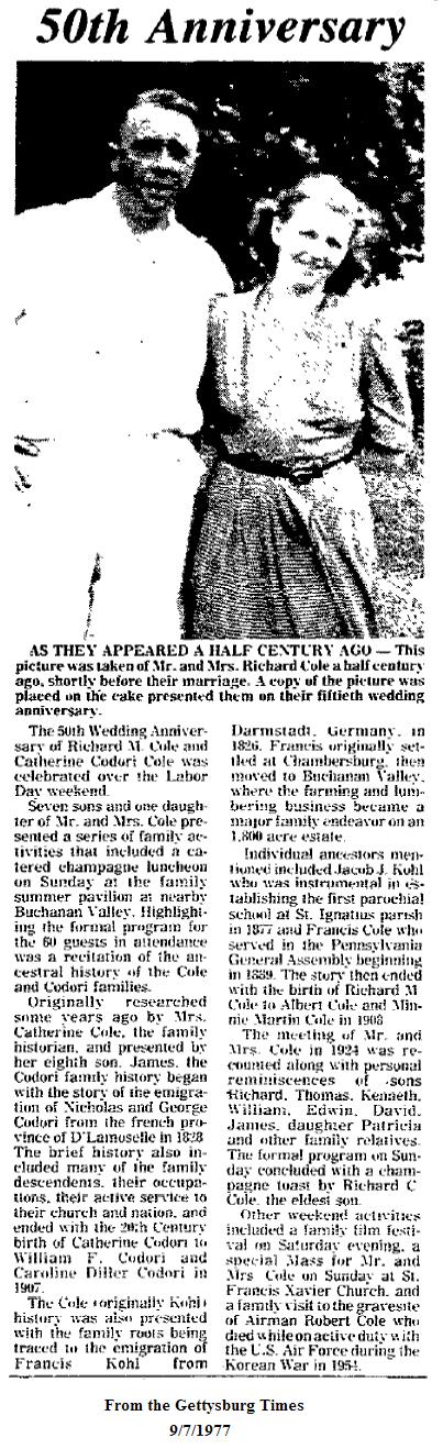 Mr. and Mrs. Cole at their 50th anniversary celebration at Buchanan Valley. |