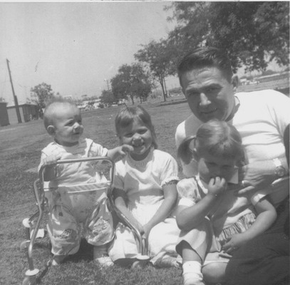 Robbie with his two sisters Lisa (center) and Ida (on the right) and father Don Archer.
