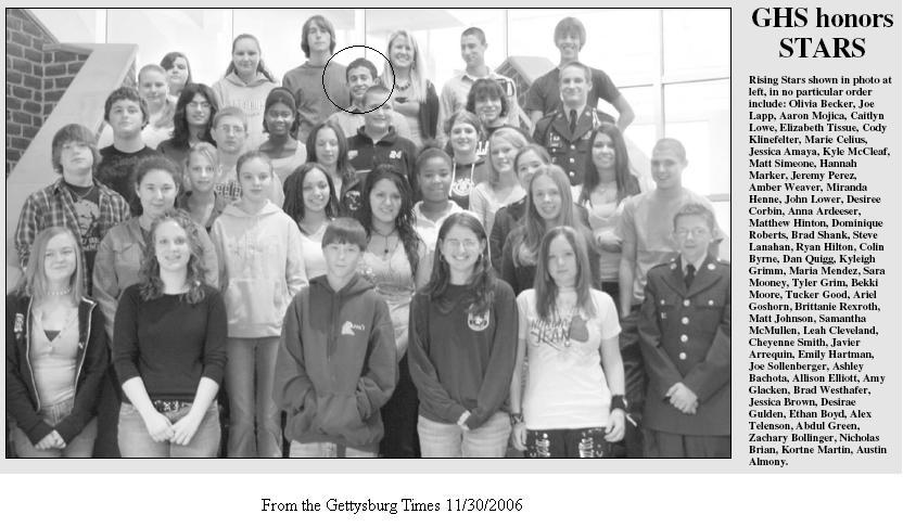 Ryan is a junior at Gettysburg High School. He was recently inducted into the National Honor Society and was named a rising star from his AP Calculus class for the first term. Other activities include being a member of the Student Council, Interact Club, Engineering Club, Ski Club and Ultimate Frisbee. He volunteers his time helping with the St. Francis Church youth group's soup kitchen project and works at the Dobbin House on the weekends.