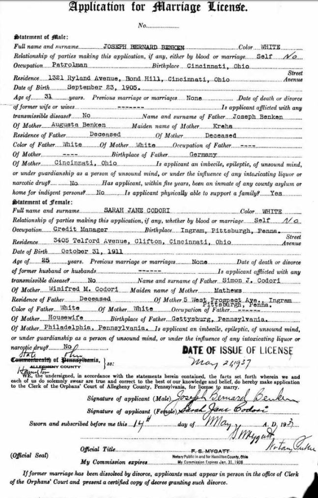 Photos below are of Joseph Benken and his wife Sarah Jane Codori.