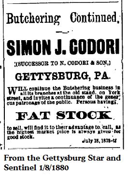 1891: A steer of his own feeding was recently killed by Mr. Simon J. Codori the