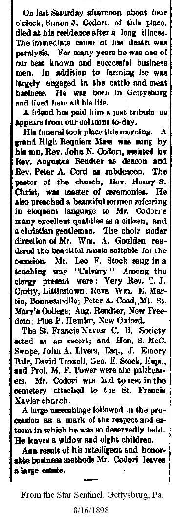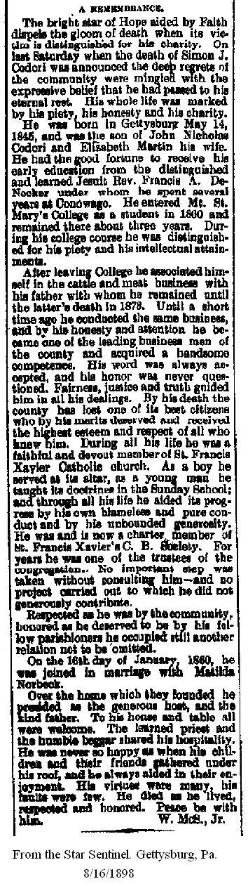+Simon John Codori, Jr., b. May 24, 1874, Gettysburg, Adams Co., PA., d. April