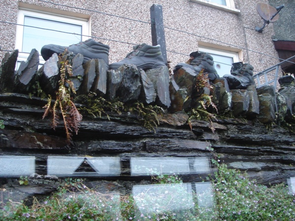 Roadside wall of old shoes |