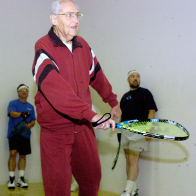 the sport. Jean rode Tom met his former racquetball partners by chance 12 years ago. He showed up for a game, but neither his nor Steve Lookingbill's opponent showed. So, the two paired and challenged Tom Heiland and his son, Tom Heiland II, to a game. For whatever reason, the men got along. And they've played together for more than a decade. Lookingbill is 43. He has partnered with Tom Codori for 12 of the 15 years he has played. He said Tom has a good "dink" shot, which means Tom smacks the ball just hard enough to hit the wall and drop. Hard to beat: "When he's having a good game, it's tough to beat him," Lookingbill said about his partner. "Everyone has a good time with Tom, and they're always amazed at how well he's doing." Lookingbill said he'd miss playing with Tom, that he was a good partner during the years. So too will Sally Senft. She owns the Tennis Rack at The Athletic Club of York. She is used to seeing Tom at the club. "In all the years I've been involved in racquetball, he's the oldest one who continued to play," Senft said. "He always showed up for matches, and the players always welcomed him." Tom and Jean got together with the racquetball guys and gals the other night. They talked sports and laughed. The guys gave him a sendoff and told him to stop by the club now and then. Jean said she doesn't mind, since he'll be home most Wednesday nights. Tom still works a day a week at Pennsylvania Auto Dealer's Exchange, a car auction business in Conewago Township. He uses the computer, e-mailing friends and family, and he's taken up reading. Tom said he's in the process of cleaning out their garage, and there are plenty of other projects around the house. "We'll try and get together," Tom said about his racquetball partners. "I'll go out there, watch and maybe have a beer or two afterward." -- Reach Kathy Stevens