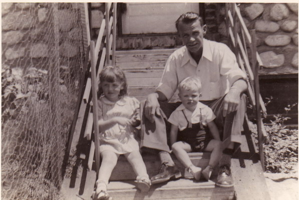 Charlene with her brother Bill and father John Jay Codori. Taken in Cucamonga, Calif. 1944