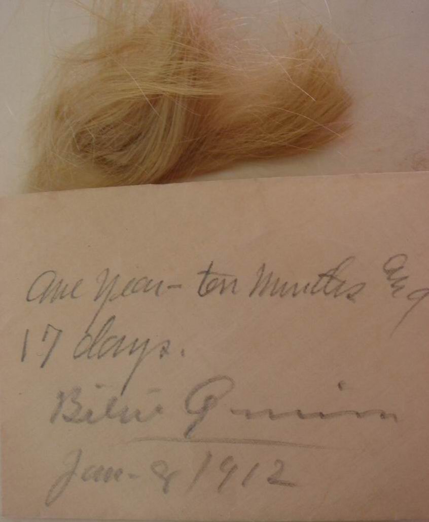 Lock of hair for William W. Quinn was kept in Susan Codori's Bible.