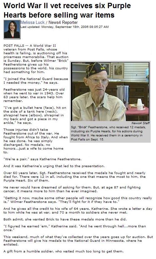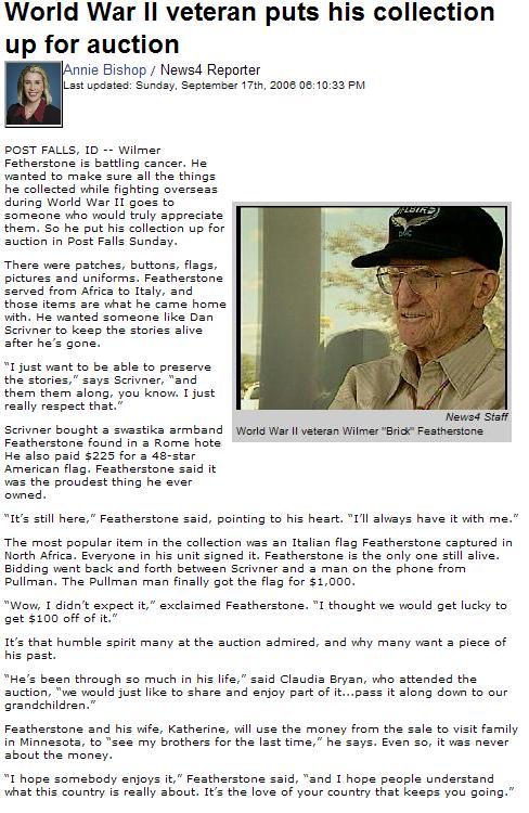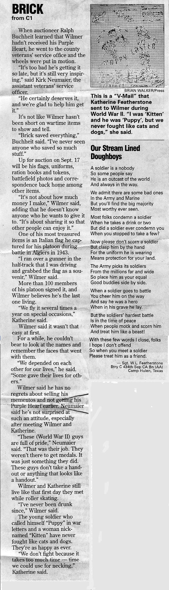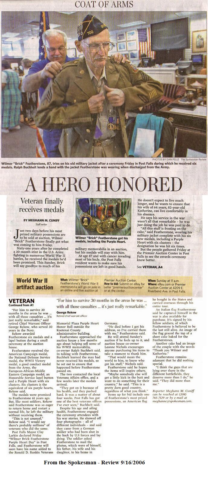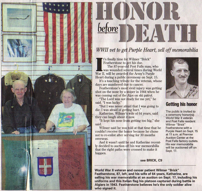 Wilmer "Brick" L. Featherstone, age 89, resident of Post Falls, passed away on Nov. 16, 2007, at Kootenai Medical Center. He was born on Nov. 6, 1918, in Red Wing, Minn. to Oliver Featherstone and Helen Schlickting. Brick married Katherine Cram on May 10, 1942, in